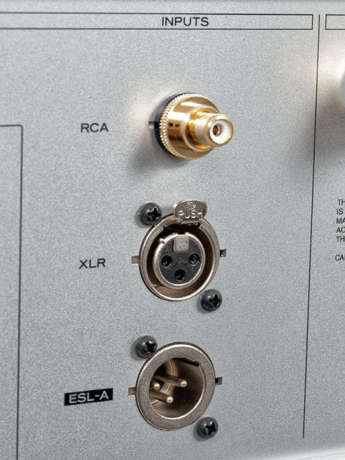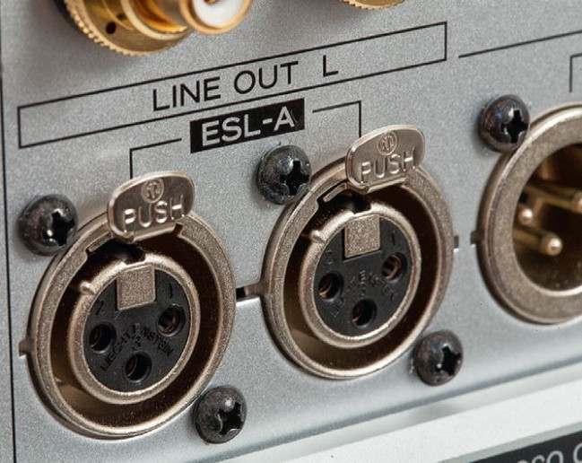 Nieco inaczej przedstawia się sytuacja z połączeniem między przedwzmacniaczem a końcówkami – tutaj także może działać system ESL-A, ale ponieważ potencjalna pomyłka mogłaby mieć katastrofalne skutki, połowa z wyjść Esoteric Grandioso C1X jest na stałe podporządkowana tej formule, a konfiguracja gniazd "odwrócona" (złącze "męskie" znajduje się w końcówce mocy); dzięki temu nie da się podłączyć regularnego wyjścia XLR (przedwzmacniacza C1X) do wejścia ESL-A w końcówce (i odwrotnie).