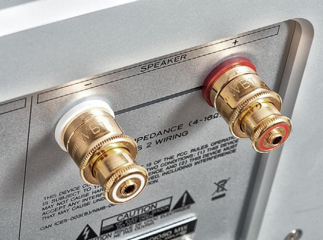 Zaciski głośnikowe dostarczył znany niemiecki specjalista – WBT. Pokrętłem na tylnej ściance możemy regulować intensywność niebieskiego podświetlenia frontu. M1X wyposażono również w system automatycznego czuwania oraz gniazda wyzwalaczy. Wnętrze M1X podzielono na sekcję audio oraz zasilanie.