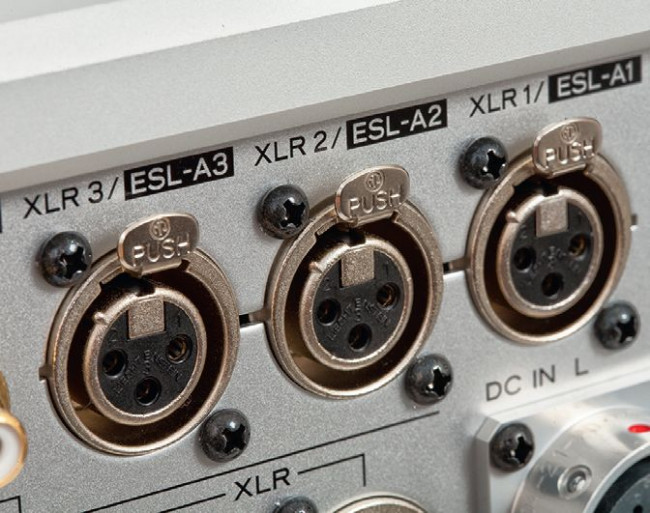 Uwagę zwracają oznaczenia ESL-A przy każdym z trzech wejść XLR oraz przy dwóch (z czterech) wyjściach. To symbol firmowego systemu ESL- -Link Analog służącego połączeniom niskopoziomowym.