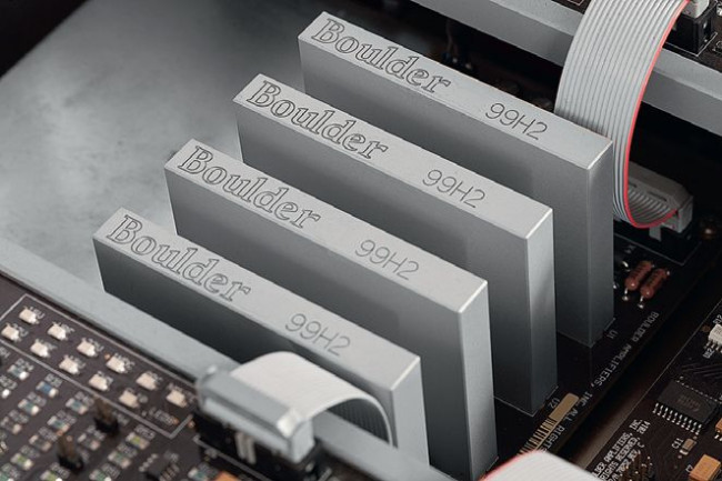 Boulder montuje własne moduły odpowiedzialne za konkretne działania, mają one formę pionowych, metalowych puszek. Napisy 99H2 oznaczają, że są to dwusekcyjne stopnie o wzmocnieniu +20 dB (cała końcówka ma +26 dB). Moduły 99H2 zawierają płytki z montażem powierzchniowym, które są zalane materiałem tłumiącym drgania.