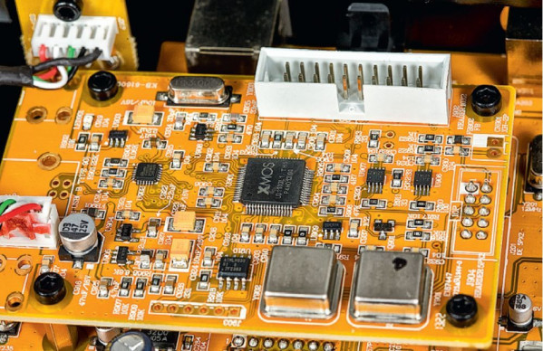 Kości tego producenta pozwalają na asynchroniczny przesył sygnału, także DSD. Na płyteczce wpinanej do głównej na pinach (stąd możliwość apgrejdu do 3.0) widać także dwa zegary taktujące - pozwalają one rozdzielić taktowanie rodzin 44,1 oraz 48 kHz.