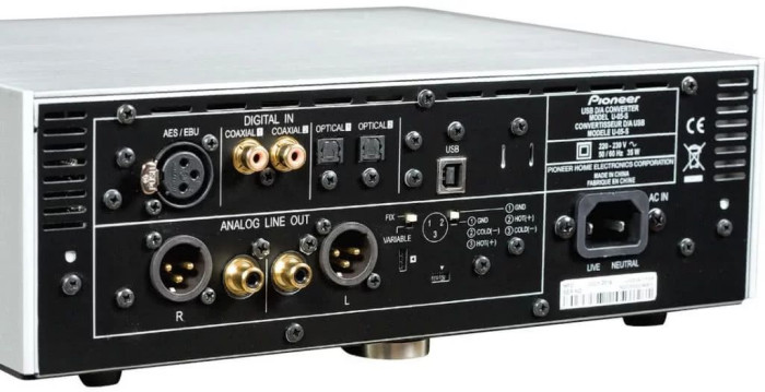 Pioneer zaskakuje także różnorodnością i liczbą wejść, zwłaszcza cyfrowych. Dostępne są dwa złącza elektryczne współosiowe, dwa optyczne, jest nawet profesjonalne AES/EBU oraz oczywiście USB.