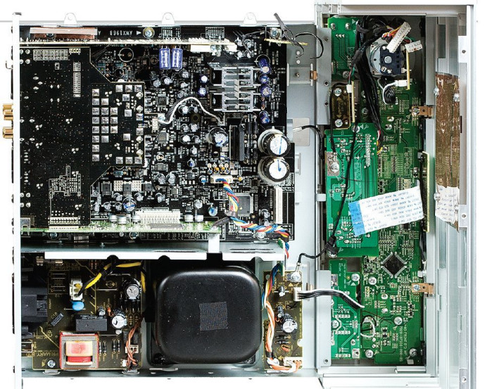 Układ wewnętrzny podzielono na kilka stref, oddzielając wyświetlacz i płytkę sterującą. Wykonano także pionowy ekran separujący komorę zasilacza od układów audio, przy czym sam transformator jest dodatkowo zamknięty w metalowej puszce. Zasilanie z niezależnych odczepów wyprowadzono dla modułów analogowych i cyfrowych.