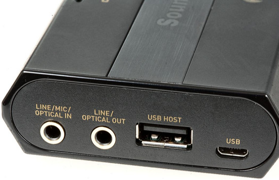 Creative Sound Blaster E5 współpracuje zarówno z urządzeniami Apple iOS, jak i tymi, które korzystają z systemu Android. Obok USB są dwa kolejne złącza mini-jack: jedno to wejście przygotowane zarówno dla analogowych źródeł liniowych, mikrofonu, ale także sygnałów optycznych cyfrowych (mini-Toslink), drugie jest wyjściem ponownie albo liniowym (analogowym), albo optycznym (cyfrowym).