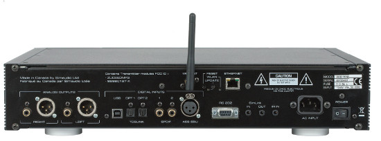 Przygotowano dwa analogowe wyjścia, RCA oraz XLR. Wśród wejść cyfrowych znajdziemy wszystkie ważne standardy; dwa gniazda współosiowe, dwa optyczne i jedno AES/EBU; każde z nich może przyjąć sygnał PCM o rozdzielczości 24 bitów i próbkowaniu 192 kHz.