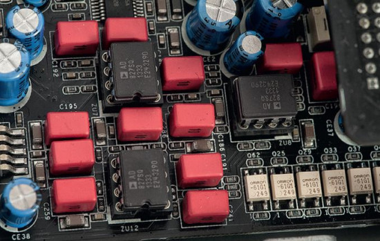 Najciekawsze są układy C/A, które wykonano separując obwody dla poszczególnych kanałów, a każdy ma do dyspozycji dwukanałową kość Analog Devices AD1955. Tym samym, już na etapie cyfrowym można przygotować sygnał zbalansowany. AD1955 pracuje z sygnałami PCM 24 bit/192 kHz oraz DSD w wersjach DSD64 i DSD128, co odpowiada specyfikacji Asusa Essence III.