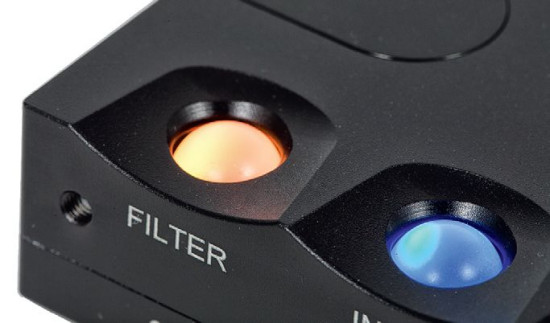 Kolory (na przycisku źródeł) odpowiadają stosownym wejściom. Warto też przyjrzeć się układowi CrossFeed, który zaprojektowano dla słuchawek (procesor cyfrowy, kreujący przestrzeń zbliżoną do tej, którą słyszymy z kolumn), oraz systemowi wyboru filtrów (jeden oczywiście zawsze obowiązkowy).