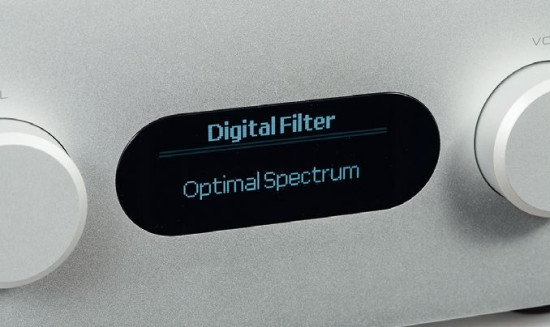 Kolejne dwa ustawienia to klasyczne fi ltry o stromym (Sharp Rolloff) i łagodnym (Slow Rolloff) zboczu charakterystyki częstotliwościowej. Żaden z nich nie jest przez Audiolaba szczególnie rekomendowany, jednak ten drugi został pochwalony za nieco mniejsze oscylacje. Filtr "Minimum Phase" jest pod względem charakterystyki częstotliwościowej (łagodne zbocze) zbliżony do trybu Slow Rolloff, lecz ma tę zaletę, że jeszcze skuteczniej zredukowano zniekształcenia przed impulsem. Ostatnie z ustawień nazwano "Optimal Spectrum" i chociaż poświęcono tutaj optymalizację czasową, to uzyskano najlepszą charakterystykę częstotliwościową.