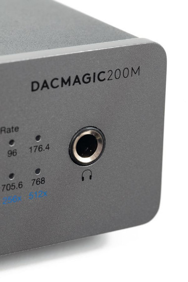 Cambridge Audio DacMagic 200M ma wyjście słuchawkowe – najbardziej typowe 6,3-mm, po włożeniu wtyku do gniazda słuchawkowego sygnał z wyjść liniowych jest automatycznie odcinany. Możemy stosować słuchawki o impedancji w szerokim zakresie 10–600 Ω (więc praktycznie każde).