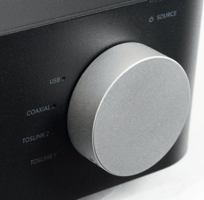 Na przednim panelu znajduje się tylko pokrętło. W przetwornikach coraz częściej pojawia się regulacja głośności, jednak nie tym razem – służy ono do wyboru jednego z czterech wejść. Poza tym nie ma żadnych przycisków, wskaźników… Elegancko, ale funkcjonalnie skromnie.