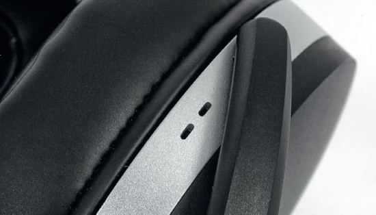Za szczelinami z boku muszli znajdują się mikrofony systemu redukcji hałasów.