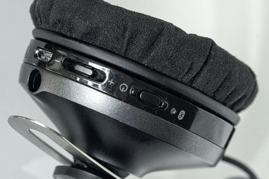 Na jednej z muszli znajduje się komplet przycisków, klasyczną formę ma jedynie włącznik zasilania, obok niego ulokowano wielofunkcyjny manipulator, mały hebelek porusza się do przodu i tyłu (w ten sposób regulujemy głośność), ale można go także nacisnąć - taki ruch otwiera zupełnie nowe zastosowania, krótkie wciśnięcie zatrzymuje i wznawia odtwarzanie (lub odbiera/kończy rozmowę telefoniczną), wciśnięcie podwójne - przeskakuje do kolejnego utworu; potrójne - przenosi do poprzedniej ścieżki. Są jeszcze "modulacje" mieszane, krótkich i dłuższych naciśnięć, uruchamiające przewijanie.