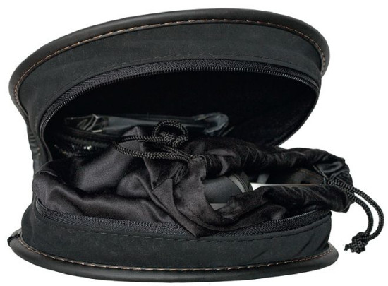 Opakowanie wykonane jest perfekcyjnie, w gąbkowym wypełnieniu precyzyjnie wycięto miejsce dla zasuwanego, sztywnego etui o półokrągłym kształcie. Po odpięciu suwaka trafiamy na kolejne akcesoria - miękki, tym razem ściągnięty sznurkami woreczek.