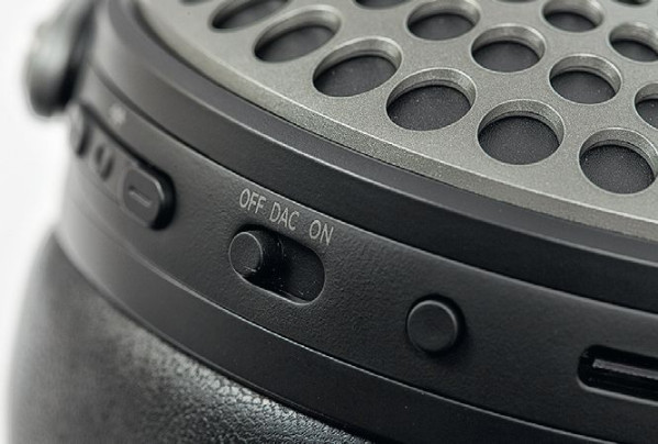 Nie licząc przełącznika trybów ANC (z lewej strony), wszystkie przyciski i gniazda znajdują się na prawej muszli. Ich układ jest konwencjonalny, większość zadań związanych z odtwarzaniem załatwia trzyczęściowy moduł, oprócz niego jest jeszcze włącznik zasilania z dodatkową pozycją – USB-DAC (słuchawki mogą przyjmować sygnał cyfrowy PCM 24 bit/192 kHz). Kolejny, niewielki przycisk służy do wywoływania asystenta głosowego.