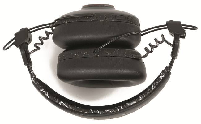 W delikatnej konstrukcji pałąka nie ma miejsca na maskowanie kabli, więc House Of Marley PVF eksponuje je skręcając przewody w efektowne spirale. Pałąk też nie jest typowy, górną część obłożono sztuczną skórą, ale od dołu (od strony głowy) nawiązano wykończeniem do weluru, dodatkowo z boku doszyto wąski pasek z materiału w abstrakcyjne wzorki.