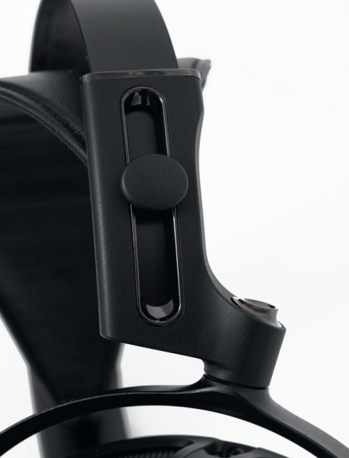 Muszle są zawieszone na solidnych i grubych widelcach o tradycyjnym kształcie, połączonych przegubami z bocznymi sekcjami pałąka. Ten składa się z dwóch części; za komfortowy styk z głową odpowiada szeroki pas (welurowo-skórzany), za stabilizację – element górny.