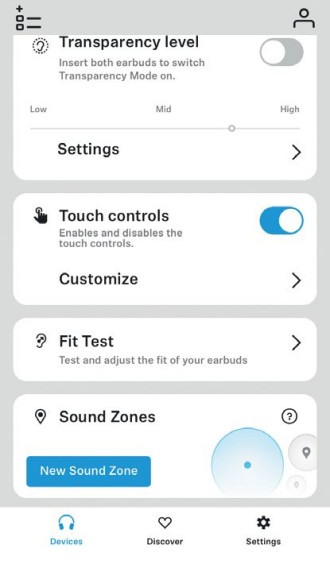 O tym, jakie one będą, zdecydujemy sami w aplikacji mobilnej, która pozwala ona zarządzać tłumieniem hałasów ANC, trybem przeźroczystości, korekcją EQ (pięć pasm i dodatkowe, niezależne podbicie basu) czy kalibracją (półautomatyczna, bo angażuje użytkownika).