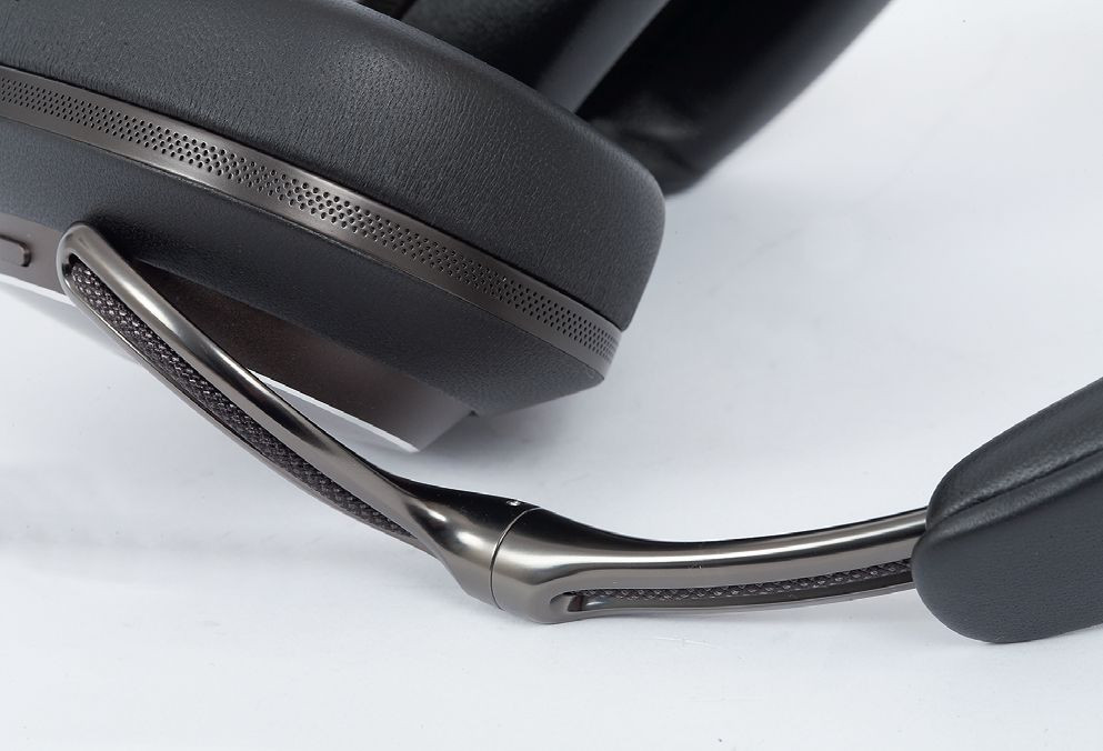 Poduszki (skóra nappa – ponoć naturalna) są niezbyt grube i dość miękkie. Zaglądając do wnętrza padów, zobaczymy ustawione pod kątem dyfuzory i oznaczenia kanałów. Muszle Bowers & Wilkins Px8 S2 podwieszono na oryginalnych (pół)widelcach, zainstalowanych (za pomocą przegubu) tylko z jednej strony, nieco wyżej znajduje się kolejny przegub, pozwalający na obracanie muszli o ok. 180 stopni; przyda się do składania i transportu.
