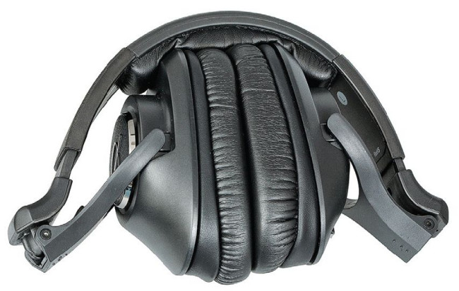 Muszle "zawieszono" na typowych widelcach i łamanych przegubach, ale umożliwiają one wyjątkowo dużą swobodę ruchu, co wykorzystano, tworząc nietypowy mechanizm składania. Muszle wchodzą w stronę pałąka i stykają się ze sobą poduszkami, które wykonano również z (imitacji) skóry.