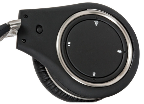 Na prawej muszli jest talerzyk, na obrzeżach którego ulokowano przyciski do obsługi zewnętrznych urządzeń. Można startować, pauzować i wybierać nagrania, aktywować i kończyć rozmowę telefoniczną.