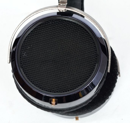 Hi-FiMAN HE-6 są kolejną konstrukcją otwartą w tym teście, tylne części muszli wykończono polakierowaną na czarno metalową siateczką, pod którą znajduje się kolejna przegroda - perforowany materiał o jeszcze mniejszej średnicy oczek.