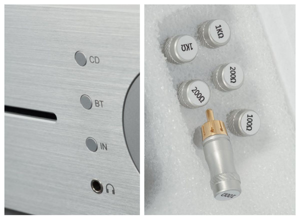 W pudełku z akcesoriami są trzy - dla impedancji 100 Ω, 200 Ω lub 1 kΩ. Można samodzielnie wykonać własne, "strojąc" układ do dowolnej wartości. To parametr istotny dla wkładek typu MC; układ phono pozwala oczywiście obsłużyć także MM, a tego wyboru dokonujemy w menu.