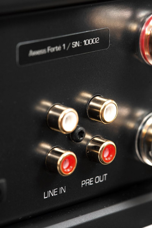 Axxess Forte 1 przyjmie sygnały płynące kablami, chociaż niechętnie ze źródeł analogowych – dla nich jest tylko jedno wejście – liniowe (para RCA). Sygnał analogowy wyprowadzimy też wyjściem z przedwzmacniacza, chociaż nie wydaje mi się, aby pojawiło się ono głównie z myślą o podłączeniu końcówek mocy (Axxess takich nie oferuje, a moc Forte 1 jest całkiem spora), można do niego podłączyć również subwoofer.