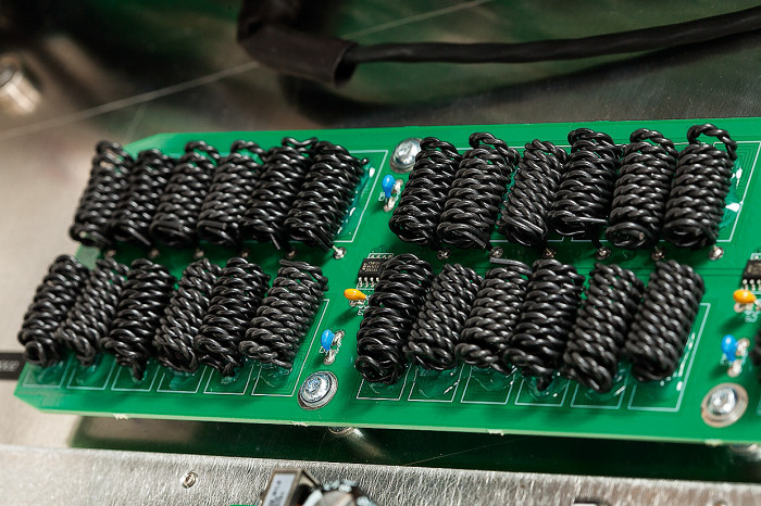 Zacznijmy od sprawy najbardziej oryginalnej – zdecydowanej, ale prowadzonej niekonwencjonalnymi metodami walki z zakłóceniami RFI. Podobnie jak w sprzęcie marki Aavik, zajmują się tym przede wszystkim tzw. cewki Tesla.
