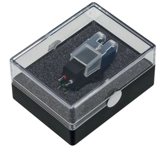 Otworzyłem biały kartonik z oszczędną grafiką i na rękę wypadło mi plastikowe, kanciaste pudełeczko złożone z dwóch połówek. Przez przeźroczyste wieko widać spory płat grafitowej gąbki, a w jej środku wciśniętą wkładkę. Korpus jest czarny, a igła niebieska - gdyby była biała, to wyglądałaby, wypisz - wymaluj, jak wkładka Unitra Mf-100.