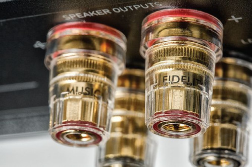 Wyjścia głośnikowe to pojedyncza para zacisków przypominających produkty WBT, ale nie ma na nich takich oznaczeń, są za to napisy Musical Fidelity i - co najważniejsze - nie stwierdziłem żadnych problemów związanych z ich działaniem.
