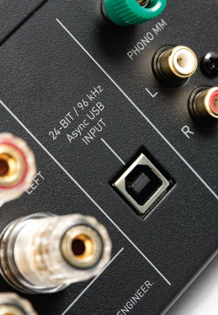 Wszystkie złącza RCA są złocone. W poprzedniej generacji (we wzmacniaczu M3i) można było dostarczyć tylko sygnały analogowe. Nowością w M3Si jest zintegrowany moduł przetwornika C/A, do którego sygnał może popłynąć przez wejście USB (typowe, kwadratowe gniazdo typu-B), więc zaplanowano podłączenie M3Si do najważniejszego dzisiaj źródła plików - komputera.