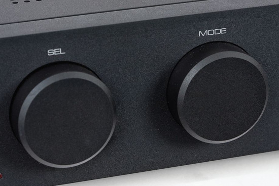 Wielofunkcyjne pokrętło uzupełnia nowoczesną sekcję sterowania, ale do legendy 8000A nawiązuje drugi element - obrotowy selektor trybów pracy: integra, przedwzmacniacz, końcówka mocy.