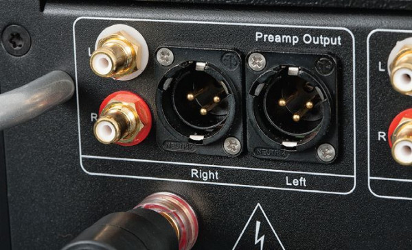 Wejścia oznaczone numerami 1 i 2 zdublowano na gniazdach RCA i XLR (możemy wybrać, z którego typu korzystamy), wejścia 3 i 4 są już tylko na gniazdach RCA - to rozsądne proporcje i rozwiązanie. Jest też para RCA i para XLR-ów służących jako wyjście z przedwzmacniacza.