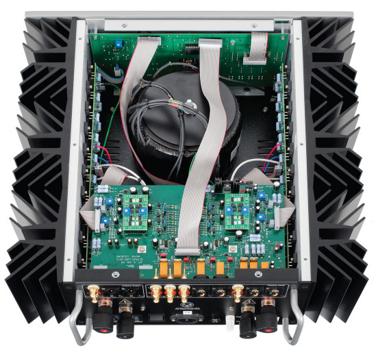 Podstawą zasilania jest ogromny transformator toroidalny. Pozostałe obwody zasilające przeniesiono na płytkę w pobliżu tylnej ścianki, na samym dole obudowy. Wyżej miejsce zajął duży moduł przedwzmacniacza. Sygnały z wejść są obsługiwane przez przekaźniki, sekcję napięciową zbudowano z elementów dyskretnych.