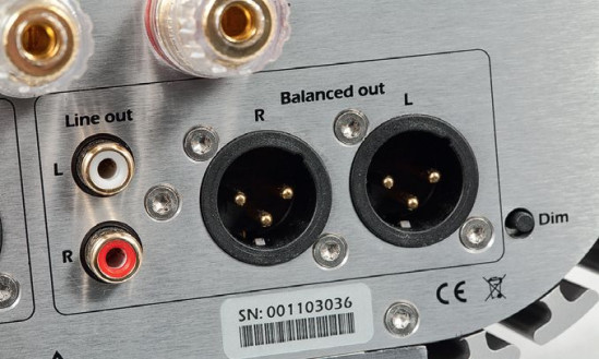 Również wyświetlacz jest efektowny, punktowy, podzielony na dwie części - rozłożone po obydwu stronach pokrętła głośności. Po lewej stronie jest pokazywany poziom wzmocnienia, po prawej - nazwa wybranego źródła; może się tutaj znaleźć też częstotliwość próbkowania dla źródeł cyfrowych. Komunikaty zmieniają się wraz z animacją przesuwającą symbole w górę i w dół.