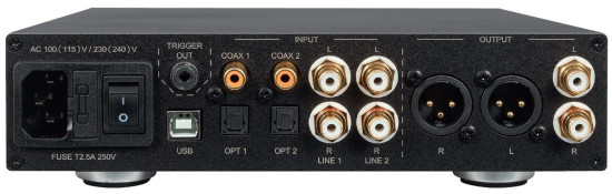 Wyposażenie w złącza na tylnym panelu jest bardzo dobre, tak jak i sama jakość gniazd. Brakuje jednak w przedwzmacniacza gramofonowego. Dwa cyfrowe wejścia współosiowe i dwa optyczne przyjmują sygnały PCM 24 bit/192 kHz, a złącze USB akceptuje 24/384 kHz, ponadto DSD256.