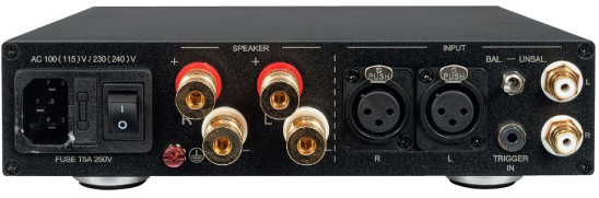 NuPrime ST-10 ma dwie pary wejść, jedną RCA i jedną XLR, wyboru dokonujemy niewielkim przełącznikiem hebelkowym. Obok wejść jest jeszcze gniazdo wyzwalacza 12 V.