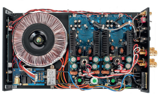 Wzmacniacze impulsowe występują często w towarzystwie impulsowych zasilaczy, jednak NuPrime nie trzyma się takiego schematu, o czym świadczy duży transformator toroidalny z dwoma odczepami (dla obydwu kanałów).