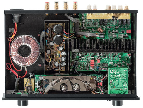 Regulacją głośności zajmuje się tzw. czarny potencjometr Alps, trwały i precyzyjny. Wejścia przełączane są przekaźnikami. Sekcja końcówek mocy to wspólny dla obydwu kanałów blok z czterema (po dwa na kanał) tranzystorami marki Toshiba. Przetwornik C/A oparto na układzie Cirrus Logic CS4344 (24 bit/192 kHz).