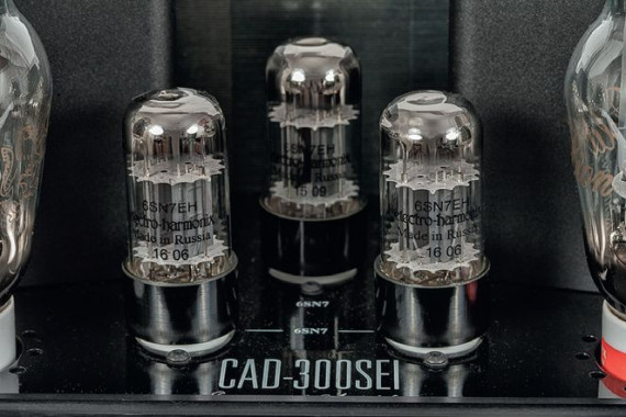 Cary Audio CAD-300SEI to układ typu SET (Single Ended Triode) z pojedynczą lampą (dla każdego kanału), odpowiadającą za wzmocnienie końcowe. To słynna 300B. Dodajmy do tego, że wzmacniacz pracuje w klasie A i nie ma sprzężenia zwrotnego na żadnym z etapów. Przy takich założeniach układ jest bardzo prosty, z krótką ścieżką sygnałową. W takiej sytuacji szczególnie ważny jest dobór lamp.