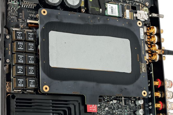 W szczupłej obudowie wzmacniacza nie udałoby się zmieścić klasycznego, liniowego zasilacza, więc zastosowano konstrukcję impulsową, która zasila wszystkie sekcje.