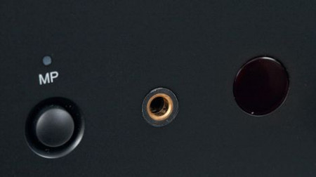Regulacja głośności odbywa się za pomocą klasycznego, analogowego potencjometru. Mamy tu również wyjście słuchawkowe oraz ciekawy "akcent" w postaci wejścia mini-jack dla źródeł przenośnych (analogowych).