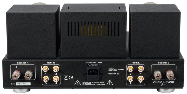 Producent określił moc wzmacniacza Audio Reveal First na 10 W przy 8 Ω i 8 W przy 4 Ω (co oczywiście sprawdzimy w laboratorium). First daje więc możliwość zasmakowania w brzmieniu Single Ended i jednocześnie uzyskania więcej niż tylko kilku watów, które wymuszałyby poszukiwanie kolumn o bardzo wysokiej efektywności; 10 W to oczywiście wciąż niewiele w skali bezwzględnej, ale w pewnych warunkach i przy umiarkowanych wymaganiach względem głośności może wystarczyć.