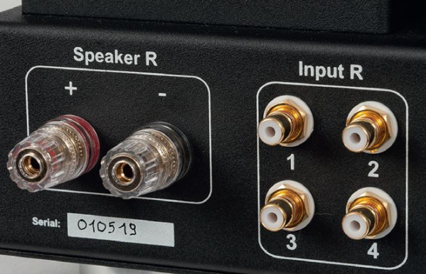 Audio Reveal First ma cztery wejścia liniowe (RCA). Wyjścia głośnikowe są pojedyncze, ale, jak już wiemy, producent dopuszcza podłączanie zarówno kolumn 8-, jak i 4-omowych.