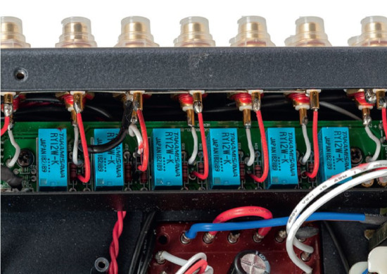 Nowocześnie prezentują się wejścia, które obsługiwane są przez wysokiej klasy przekaźniki. Sygnał musi jednak płynąć w okolice przedniej ścianki (długie odcinki przewodów), gdzie odbywa się regulacja wzmocnienia (w tej roli niestrudzony Alps ze wspomaganiem silniczka zdalnego sterowania).