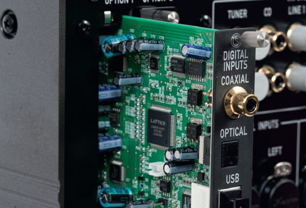Instaluje się je w dwóch zatokach na tylnej ściance, można oczywiście wykorzystać tylko jedną, a do dyspozycji mamy przedwzmacniacz gramofonowy (dla wkładek MM i MC) i wysokiej jakości przetwornik cyfrowo-analogowy (między innymi z wejściem USB, obsługą sygnałów DSD256 oraz PCM 32/384).
