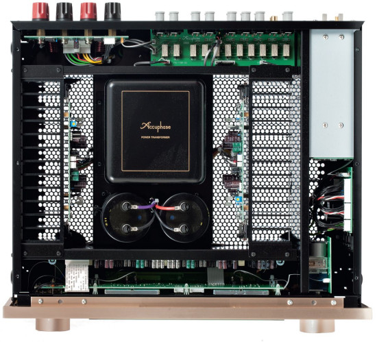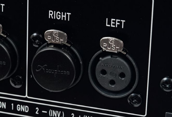Wyjścia głośnikowe są podwójne, charakterystyczne dla wzmacniaczy Accuphase, z plastikowymi, ale masywnymi i wygodnymi terminalami. Staranność przygotowania każdego urządzenia Accuphase wykracza poza właściwe urządzenie. Dotyczy również takich drobiazgów jak sterownik, ochronne zatyczki gniazd, pomniejsze akcesoria, instrukcja, a nawet opakowanie.