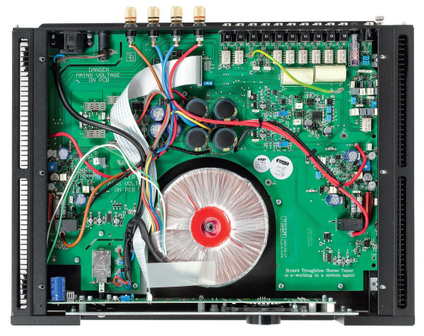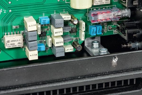 Przedwzmacniacz oparty na tranzystorach FET pracuje w klasie A, w końcówce mocy zastosowano pary Sankenów z układami kompensacji temperaturowej, przykręcone do radiatorów mniej więcej w połowie głębokości obudowy.
