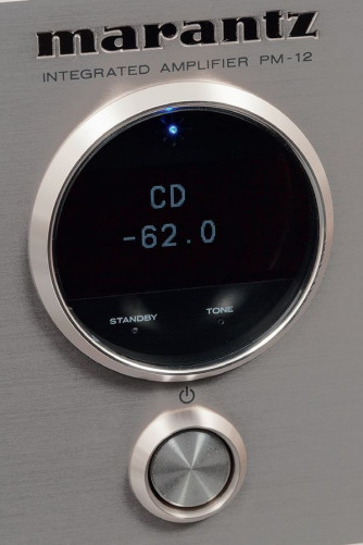 Wyświetlacz Marantza PM-12SE jest dość skromny, jego rola ogranicza się do kilku podstawowych zadań: wskazuje przede wszystkim aktywne wejście oraz poziom wzmocnienia, chociaż przygotowano też krótkie menu.