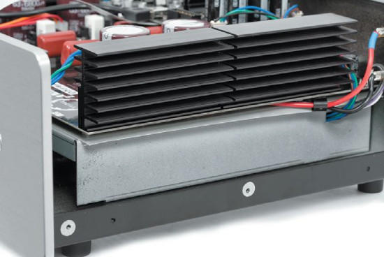 Końcówki mocy osadzono na dwóch niewielkich radiatorach, z każdej strony pracuje sześć tranzystorów. Konstrukcja końcówek, przedwzmacniacza oraz sposób prowadzenia sygnału do gniazd głośnikowych - wszystko to wskazuje, że układ zbalansowany ogranicza się do wejść XLR.